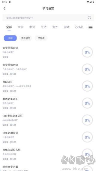 3、自定義學習范圍,考試詞匯、日常用語一鍵篩選,學習方向明確,目標快速達成。