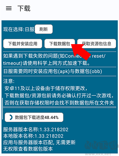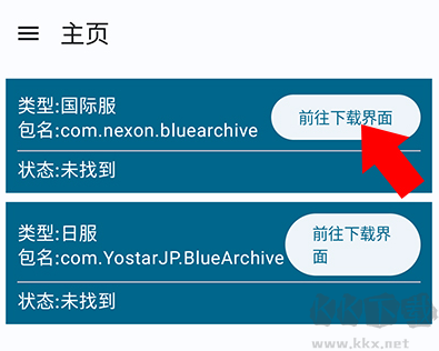 1. 在主頁面選擇日服后方的"前往下載界面"按鈕。