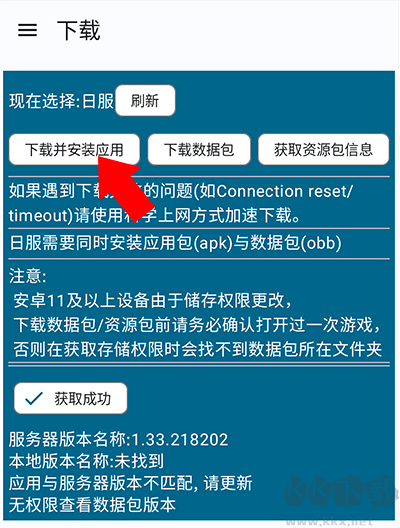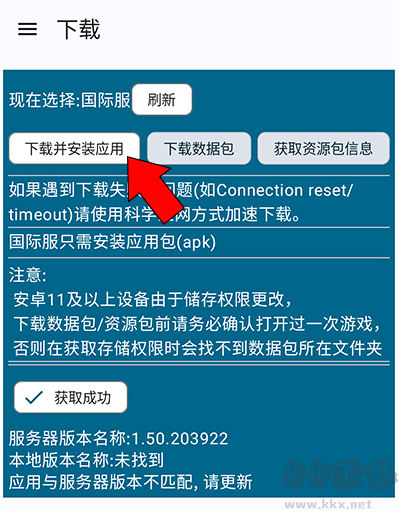 2. 數(shù)據(jù)獲取成功后,點擊"獲取并安裝應(yīng)用"選項。