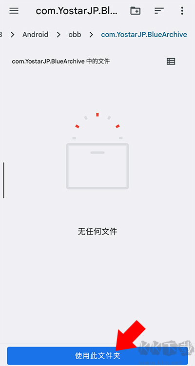 4. 選擇文件管理器內(nèi)的"android/obb/com.YostarJP.Bluearchive"目錄。