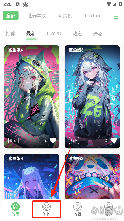 1、點擊界面下方“創(chuàng)作”按鈕,進入制作頁。
