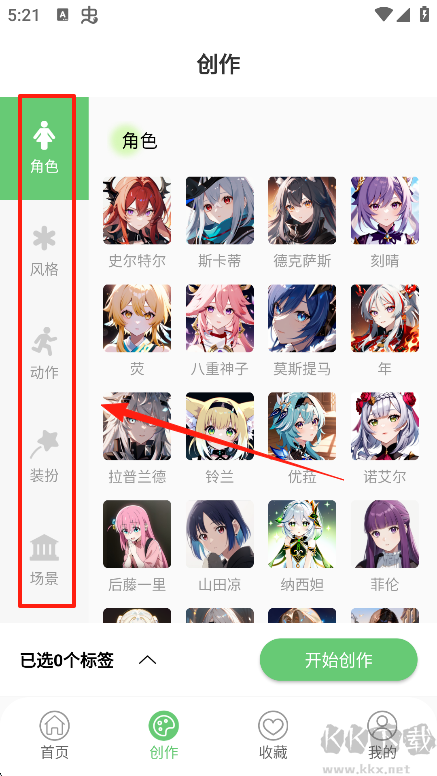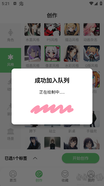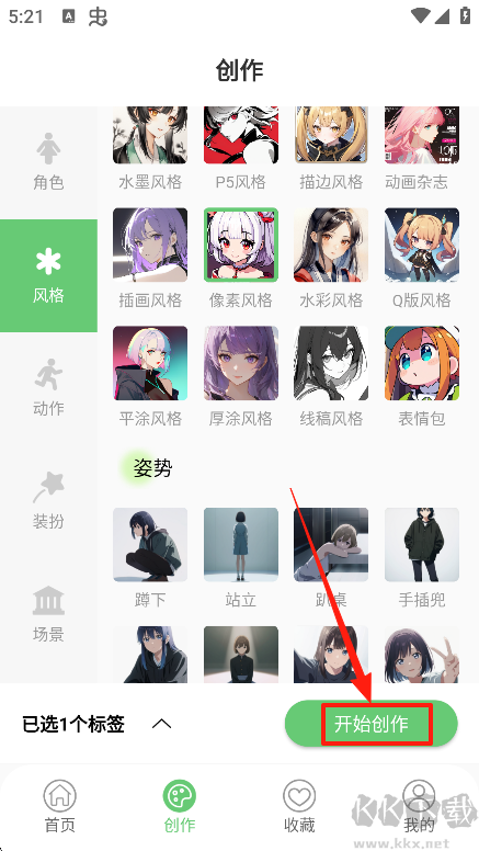 3、按偏好點選對應(yīng)標簽,輕按“開始創(chuàng)作”。