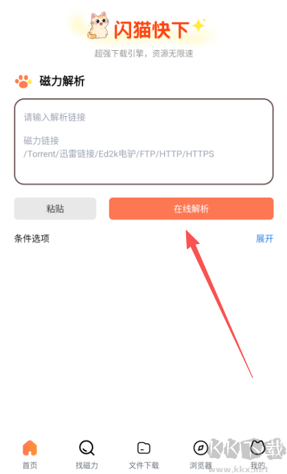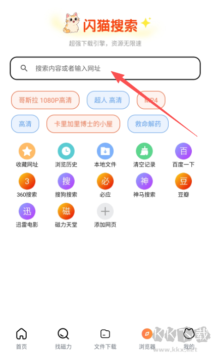 1、復(fù)制資源鏈接,粘貼至閃貓快下首頁(yè)搜索框;