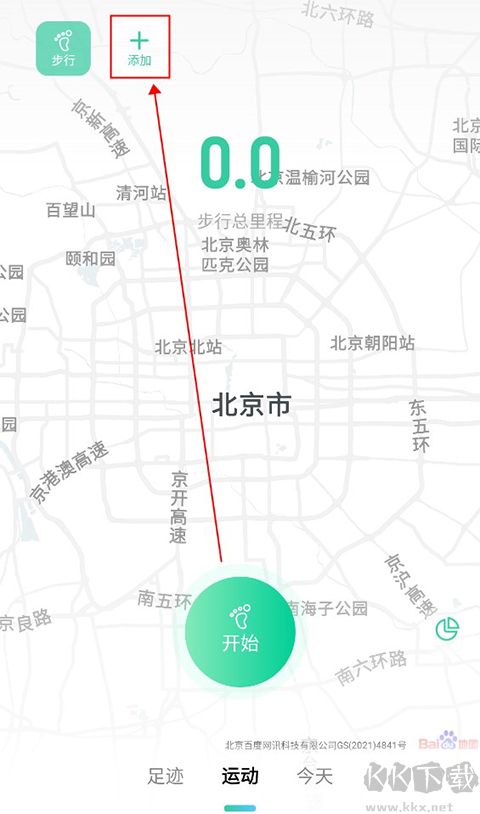1、用戶在運(yùn)動頁面,點(diǎn)擊左上角的添加,增加足跡類型。