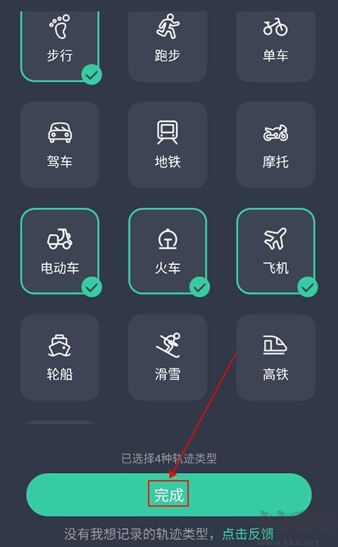 2、然后就可以選擇自己常用或者要記錄的運(yùn)動方式,選擇好點(diǎn)擊下方完成即可。