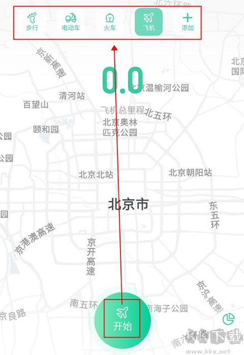 3、之后就可以在上方選擇自己要記錄的足跡類型,點(diǎn)擊開始就可以啦!