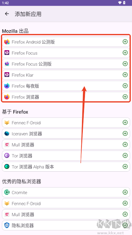 3、在下載列表中查看各類可安裝的瀏覽器。