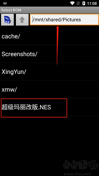 3、在剛才創(chuàng)建的文件夾中找到已下載的 NES 格式游戲文件
