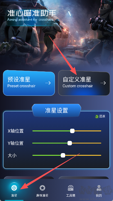 5、準(zhǔn)星定制:支持預(yù)設(shè)和自定義模式,適配不同游戲及個人偏好