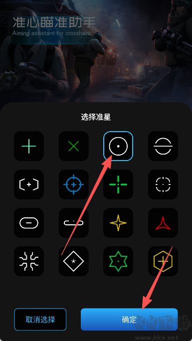 4、瀏覽并選擇心儀的準(zhǔn)星樣式,點(diǎn)擊“確定”完成應(yīng)用