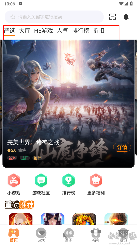 1、打開應用后,首頁將呈現(xiàn)熱門推薦、排行榜及優(yōu)惠專區(qū)等內容。向下滑動可探索更多游戲,適應不同偏好。
