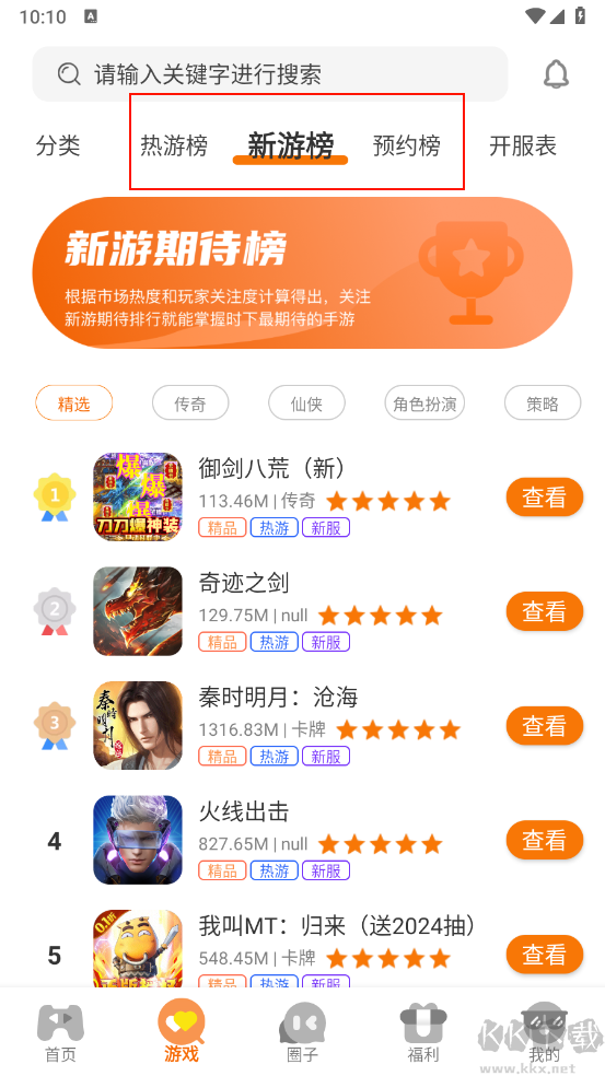 4、排行榜區(qū)域展示了當前受歡迎游戲的排序,方便了解其他玩家的選擇傾向。