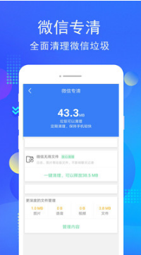 1、高效深層垃圾清理,搭配微信QQ專清功能,一鍵釋放手機(jī)空間