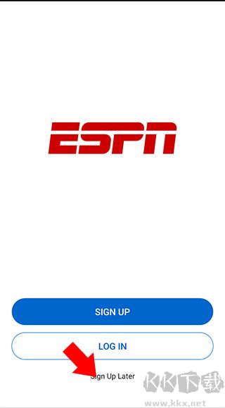 1、下載并打開espnapp,來到下方界面,有賬號的話點擊SIGN UP(登錄),沒有賬號選擇LOG IN(注冊)或者下方的Sign Up Later(稍后登錄)