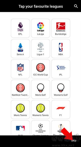 3、之后選擇我們最喜歡觀看的聯(lián)賽內(nèi)容,點擊相應圖標即可添加,可以一次性添加多個,這個根據(jù)自己的需求選擇,進入應用之后也可以在設置中更改