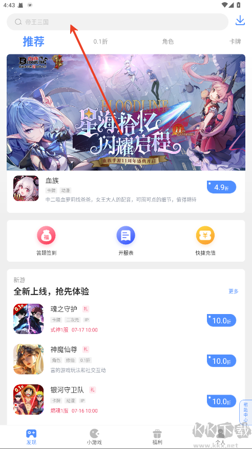 1、在首頁或搜索框填寫你想體驗的手游名稱,快速定位該游戲。