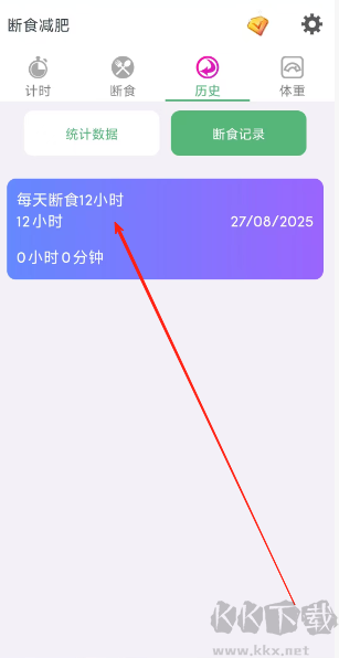 2、進(jìn)入歷史頁面后,選擇斷食記錄。