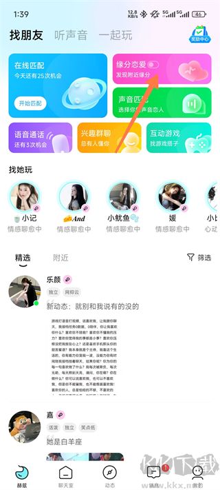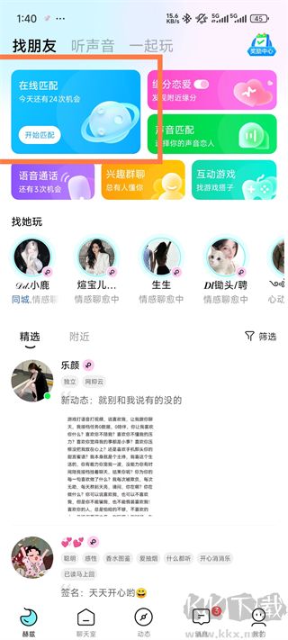 1、【語音匹配】 在線連麥交朋友,隨機(jī)配對(duì)暢聊。高冷?優(yōu)雅?或許是個(gè)愛演的開心果!快樂源泉就在這里,甜甜的戀愛觸手可及;