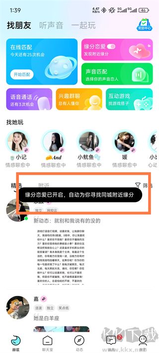 2、緣分戀愛開啟后系統(tǒng)會(huì)自動(dòng)為你尋找同城附近緣分