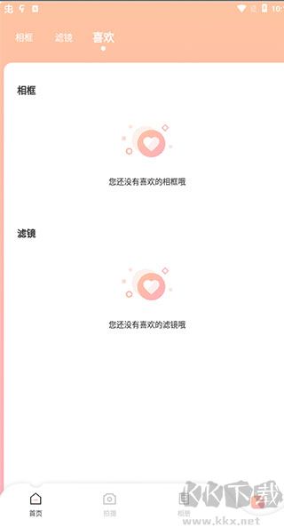4、若遇到心儀的相框,點(diǎn)擊喜歡按鈕,隨后在喜歡欄中就能看到自己保存的濾鏡與相框。