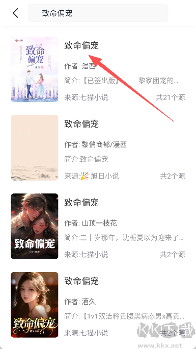 3、在搜索結(jié)果中選擇目標(biāo)小說(shuō),進(jìn)入詳情頁(yè);
