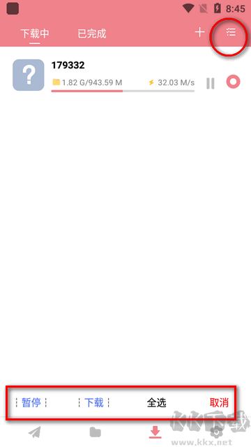 4、通過右上角的多選功能,可對全部下載任務(wù)進行管理;
