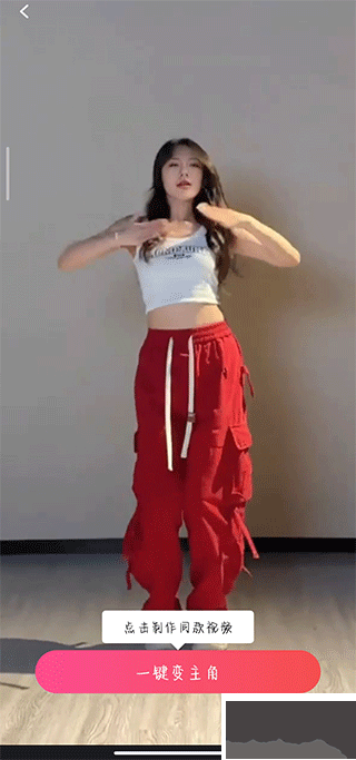 3、找到模板后并點(diǎn)擊即可觀看模板全部內(nèi)容,點(diǎn)擊一鍵變主角即可制作同款視頻