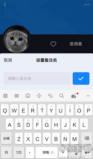 2、打開詳情頁面之后,從對方頭像的下方找到“備注”按鈕(如下所示),一鍵即可重新編輯備注信息。