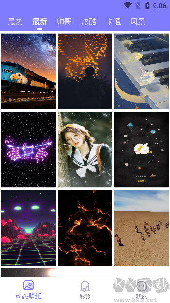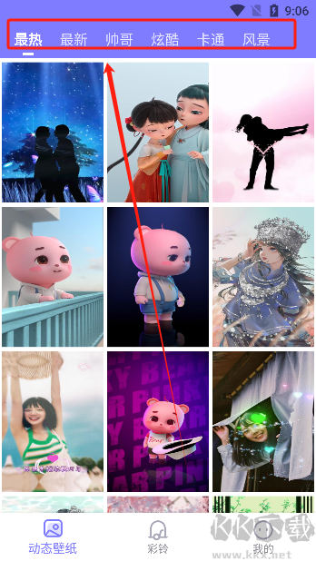 2、通過頂部分類標(biāo)簽切換不同類型的壁紙;
