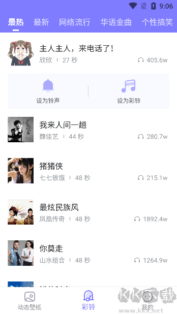 4、應(yīng)用底部提供多種風(fēng)格的彩鈴資源,可供試聽與設(shè)置。