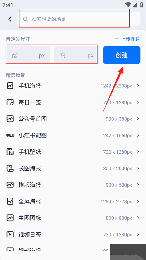 2、在搜索欄中輸入目標(biāo)場(chǎng)景名稱,或直接選用推薦模板;