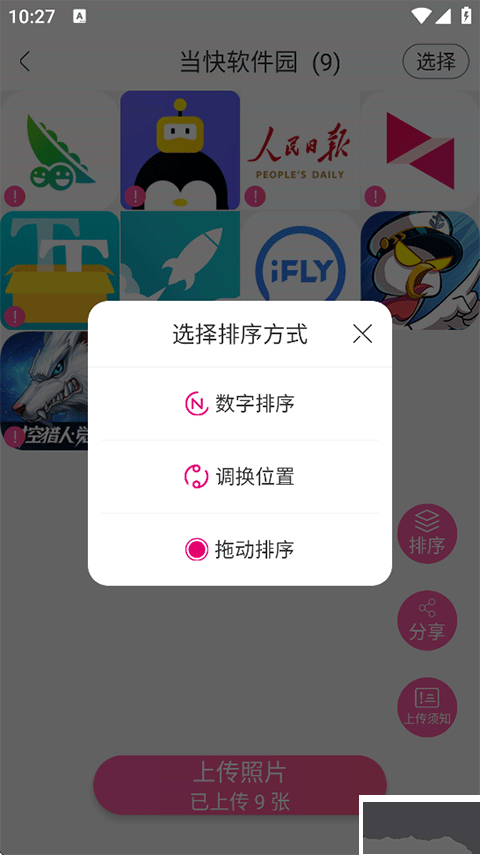 4、上傳后支持對照片進(jìn)行數(shù)字排序、調(diào)換位置和拖拽調(diào)整順序;