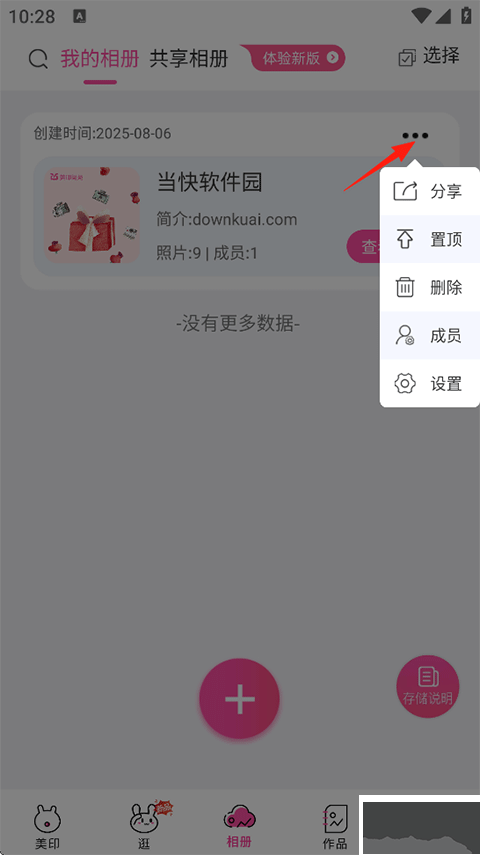 5、制作完成后,可點(diǎn)擊右上角擴(kuò)展按鈕,進(jìn)行分享、置頂、刪除或添加成員共享等操作。