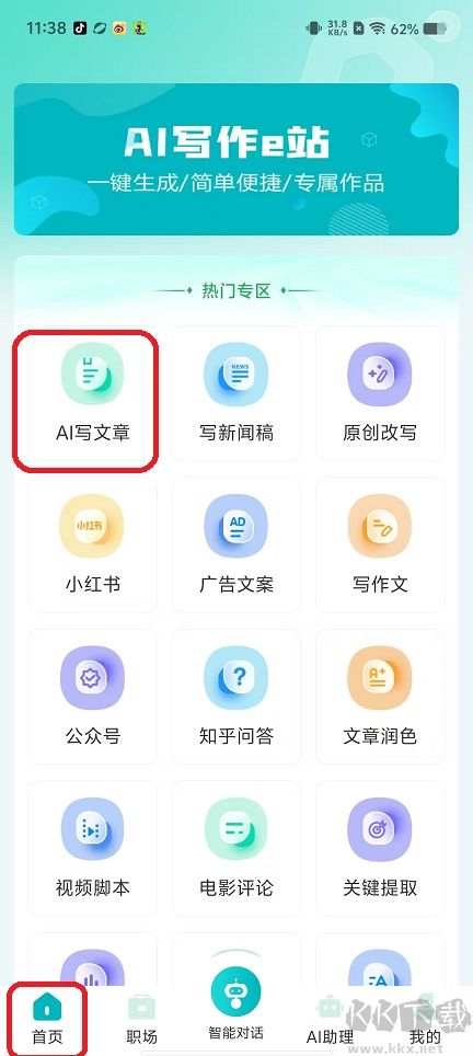 AI寫作e站是一款智能手機(jī)寫作輔助工具,提供包括作文、文章、文案、論文大綱、公文、商務(wù)文件、報(bào)告、視頻腳本及演講稿等在內(nèi)的多種模板。你只需要輸入主題、關(guān)鍵詞或文章大綱,系統(tǒng)就可以自動生成初步文本內(nèi)容,還支持進(jìn)一步修改與優(yōu)化,極大提升寫作效率。
