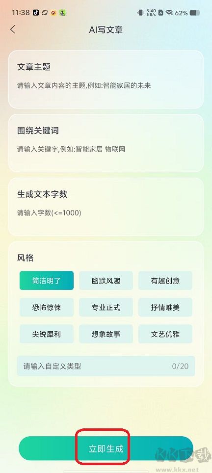 3、個(gè)性化定制:支持按用戶的寫作習(xí)慣與需求選擇不同模式和模板,實(shí)現(xiàn)個(gè)性化創(chuàng)作;