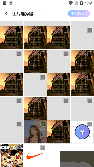 2、以漫畫臉功能為例,點擊漫畫臉進入圖片選擇頁面,選擇自己需要修改的圖片后,點擊下一步;