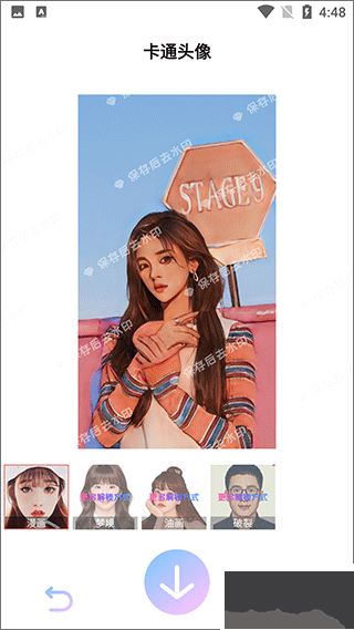 3、圖片自動修改成了漫畫風格,點擊屏幕底部保存去除水?。ㄗ⒁?,如果提示要訂購會員,關閉即可,然后點擊觀看視頻就可以保存圖片了)。
