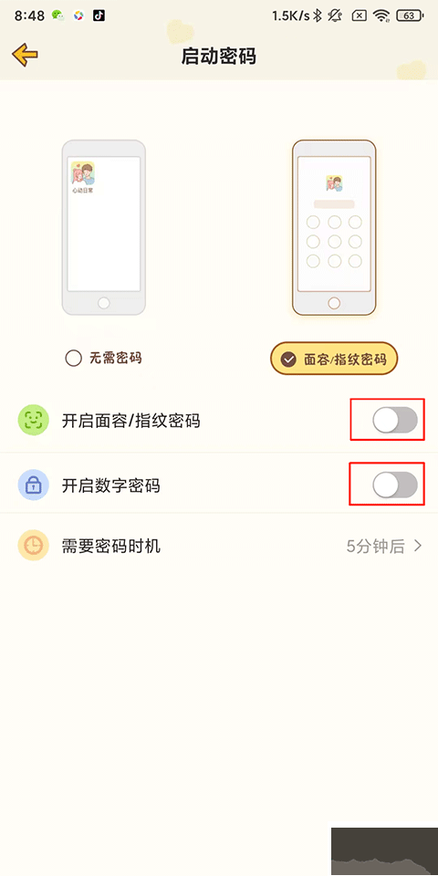 3、勾選面容/指紋解鎖,下方滑動開啟面容/指紋或數字密碼即可。