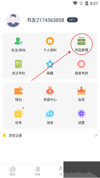第二步:點擊“作品管理”,進入創(chuàng)作頁面