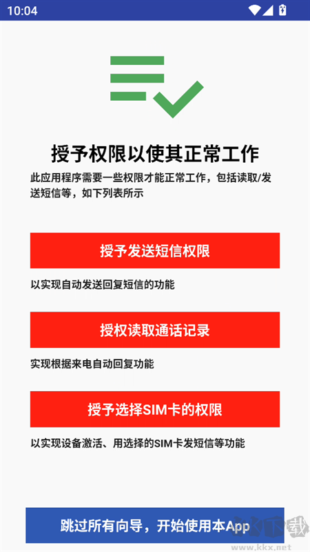 2、隨后,開啟信息、通話及SIM卡相關(guān)訪問權(quán)限。