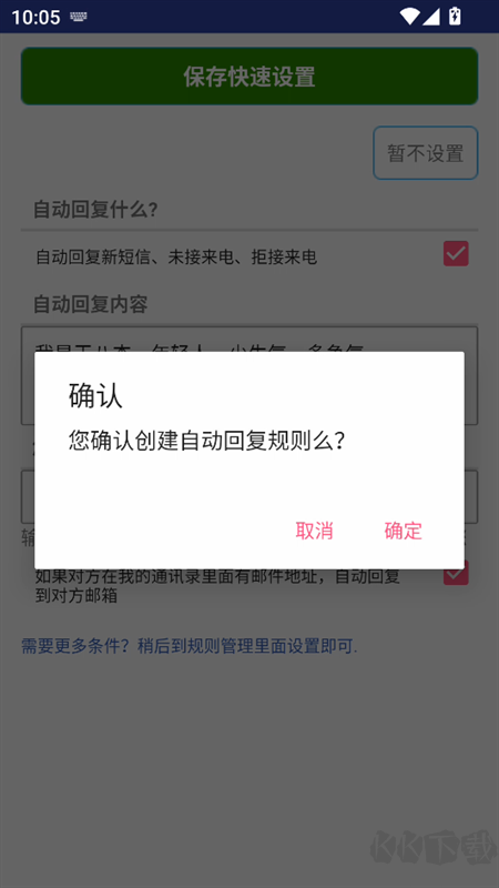 3、自動回復(fù)可搭配多項條件,包括時間、日期、星期、號碼來源等。