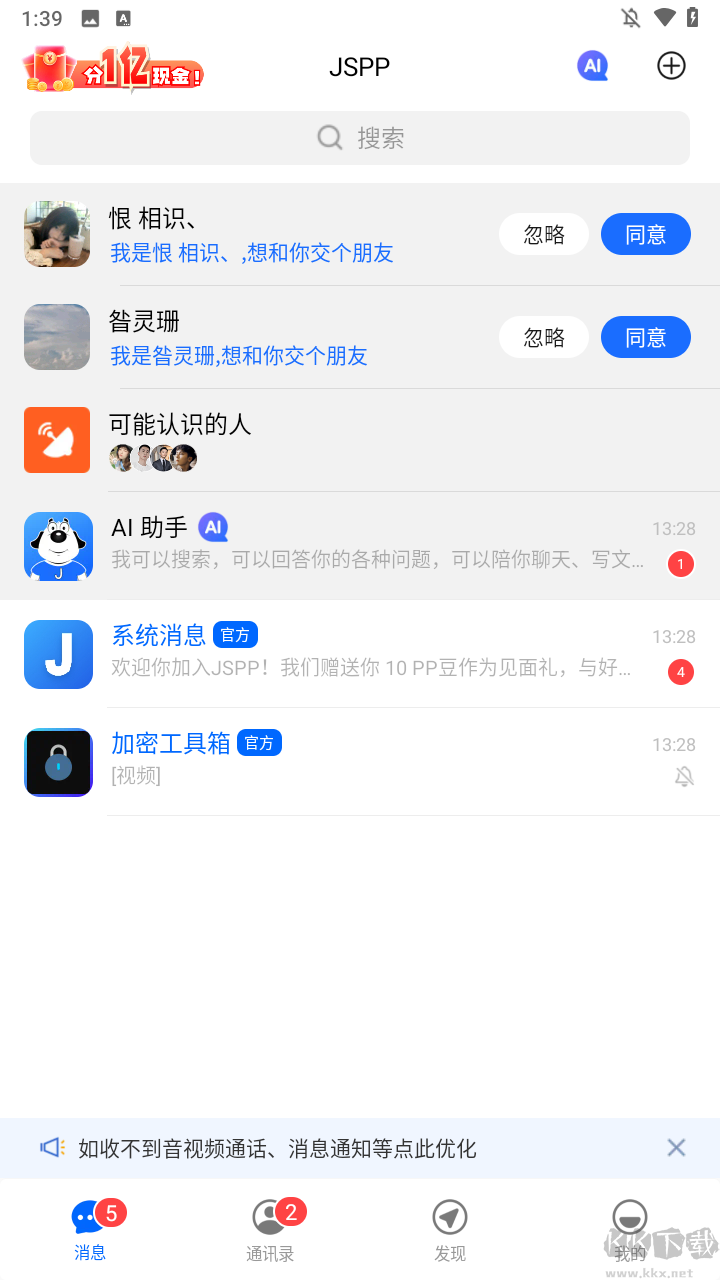 JSPP是由即時匹配(上海)網(wǎng)絡(luò)科技有限公司開發(fā)的一款專注加密通信的應(yīng)用,主要面向商務(wù)辦公和社交溝通場景,軟件提供全面的隱私保護(hù)機(jī)制,涵蓋通信加密、閱后即焚等多種安全功能,有效保障大家的隱私。在社交體驗(yàn)上,JSPP提升了消息處理速度,并具備好友動態(tài)實(shí)時提醒,方便你隨時關(guān)注親友最新狀態(tài),你還可以根據(jù)自身需求選擇不同安全級別,進(jìn)一步加強(qiáng)個人隱私防護(hù)。