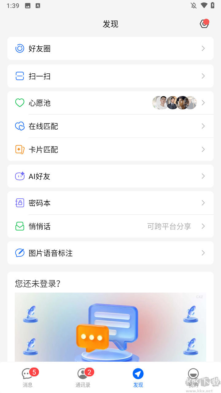 1、溝通功能:支持發(fā)送文字、語音、圖像、視頻、電子名片、位置、表情,支持視頻與語音通話,支持群聊及閱后即焚。