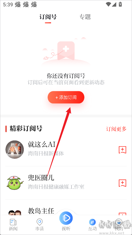 2、在互動頁面中,找到點(diǎn)擊【添加訂閱】按鈕,進(jìn)入訂閱列表。