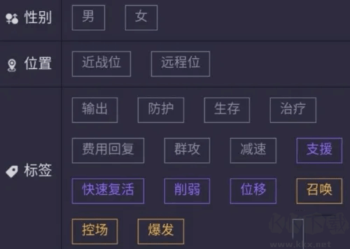 3、自主挑選角色的資質、站位、性別、種族等標簽進行搭配。