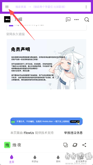 1、打開手機上的燭夜應(yīng)用,進入主界面。