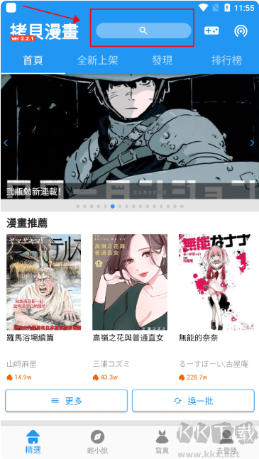 4、如需查找特定漫畫,可點擊頁面上方的搜索框。