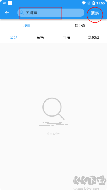 5、輸入與漫畫相關(guān)的關(guān)鍵詞,即可開始搜索。