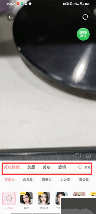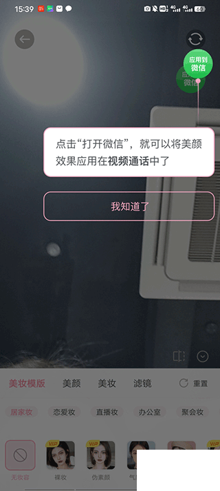 3、點(diǎn)擊應(yīng)用到微信,就能打開(kāi)微信,將美顏效果應(yīng)用在視頻童話中了。