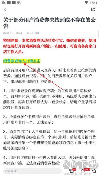 2、進入之后下滑,點擊藍色文字就可以查看到消費券使用的詳細規(guī)則。